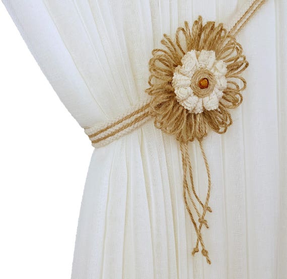 Magnetic curtain tie backs are the perfect solution for keeping curtains open while not damaging the this faux flower just happened to match the cord perfectly! See more ideas about tieback, curtain tie backs, flower curtain. This listing is for 2 wall flower tie backs.