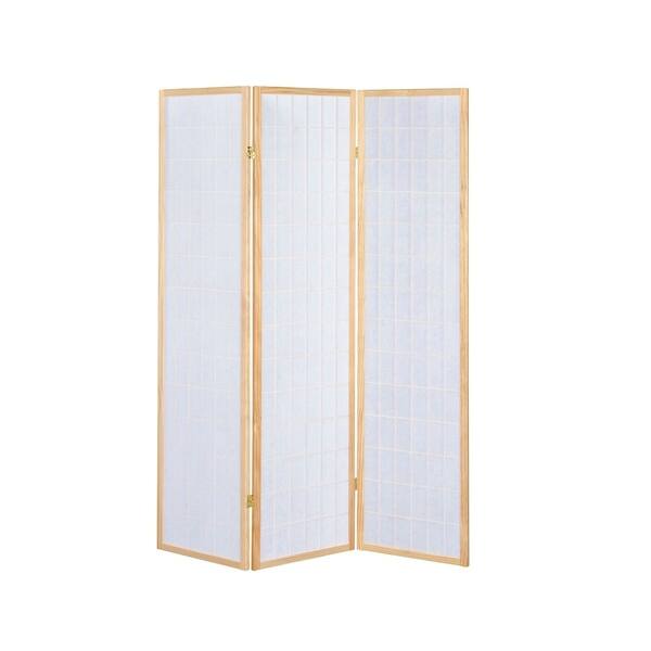 Each screen panel is 17.48w. This wood folding screen features three panels, allowing you to move it around your space to suit your needs. Cappuccino frame 3 panel 'circle design ' folding screen.