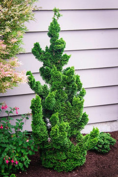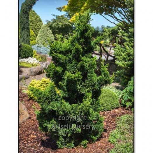 Thoweil dwarf upright hinoki cypress.