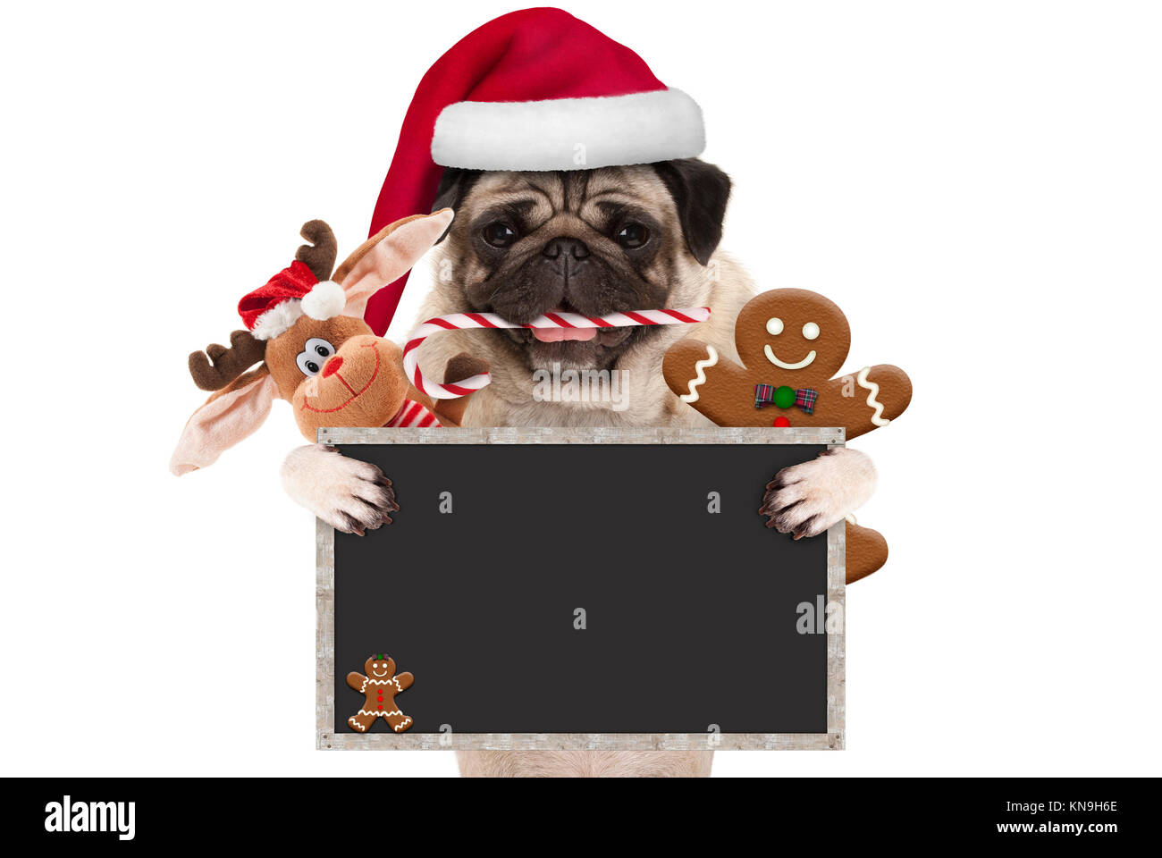 Pug Puppy In Red Santa Hat With Christmas Candy Cane Peeking Stock Photo Picture And Royalty Free Image Image 75262938 from previews.123rf.com