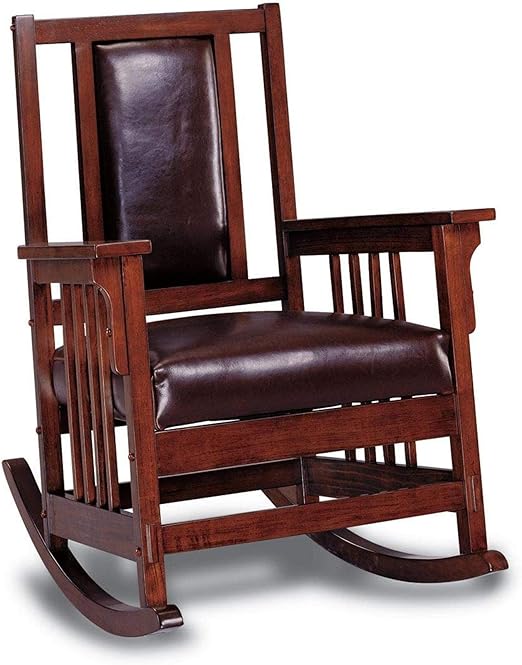 Amazon Com Rocking Rocker Wood Leather Chair With Mission Style In Walnut Finish Furniture Decor from images-na.ssl-images-amazon.com