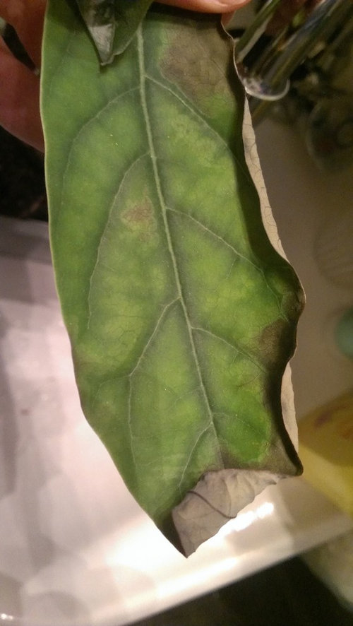 I'm more worried about the small they are just small brown spots but they have spread throughout the entire leaf, and there are two more which are nearly completely brown, and.