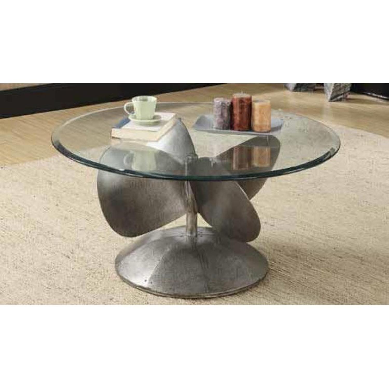 Black iron and glass circular coffee table the rugged versatility of this iron and glass coffee table makes it perfect for those who have a rustic décor at home.