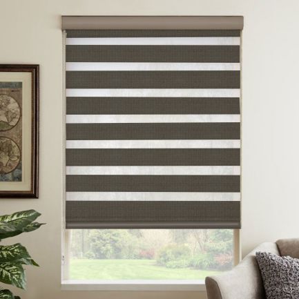 Dark brown window roller blinds.